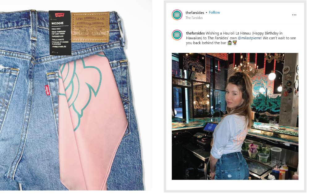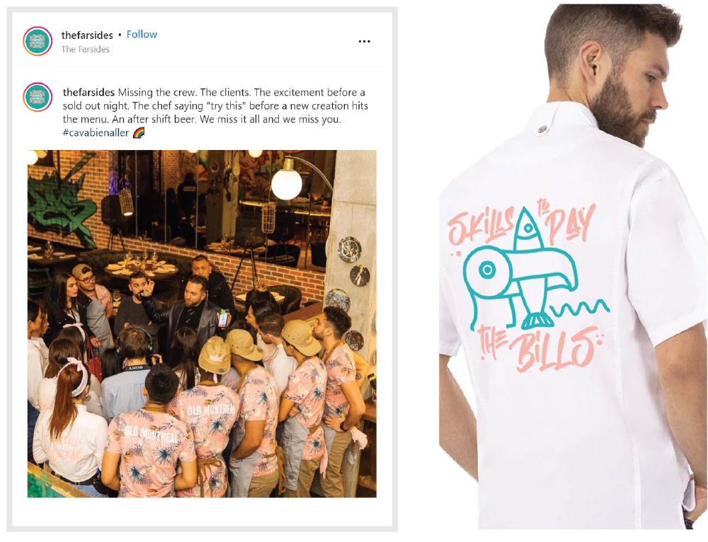 The Farsides restaurant offers an eclectic fusion menu and décor complete with larger-than-life Hawaiian prints, pop-culture inspired details and murals that feature hip-hop giants. Dropping the ball on this bold vision when outfitting their staff was out of the question: it would have completely broken the spell and ruined the immersive experience they had so carefully crafted for their clientele. Together, we worked on styling everything from their wait staff’s uniforms to their chef coats with all-over prints and eclectic details that matched their aesthetic.