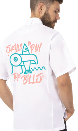 These chef’s coats are liquid repellent, stain-resistant and fully customizable. Perfect for open-kitchen restaurants that want to match their cooking staff’s outfits in their brand concept.