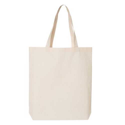 The Canvas tote bag is perfect for on-the-go use. The size of 14"W x 15"H x 4"D makes it spacious yet still lightweight and easy to carry. This tote features cross-stitched cotton webbed handles for maximum durability.