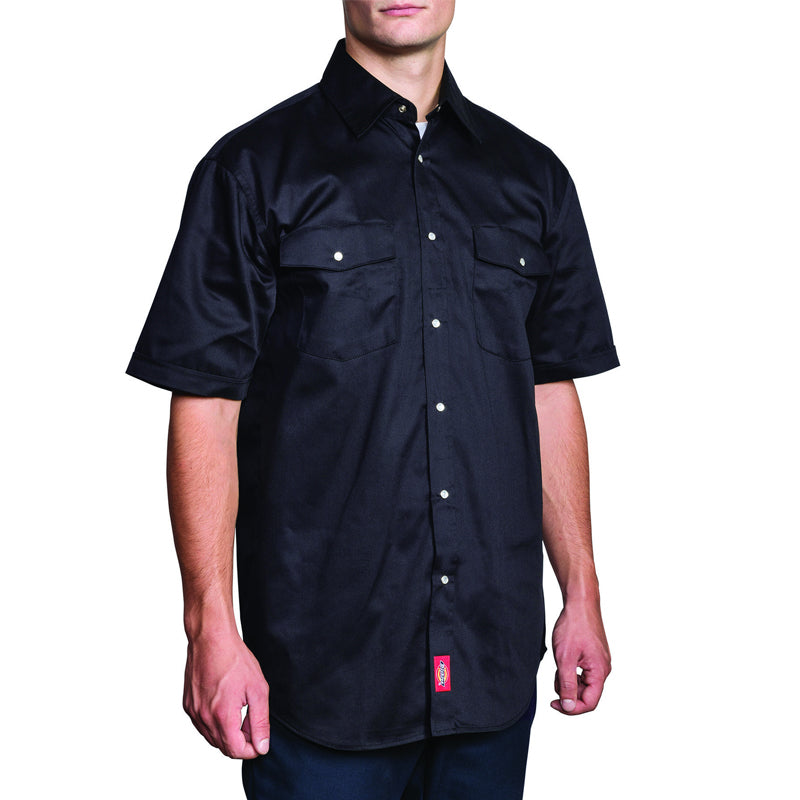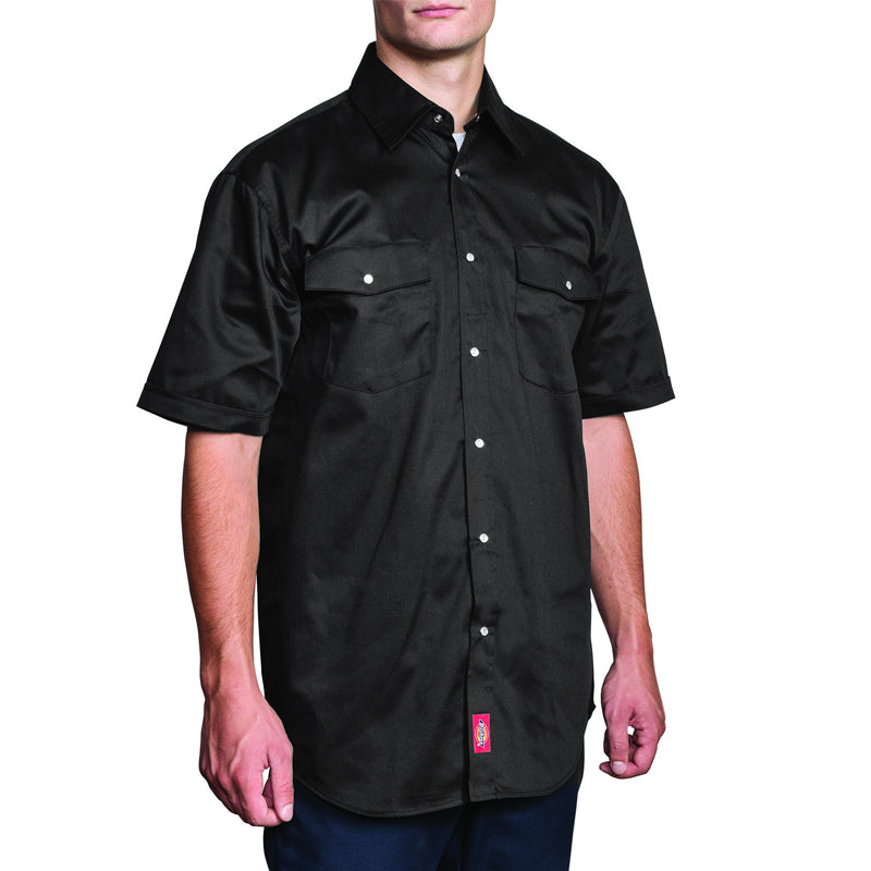 With a reputation for quality and durability, Dickies has been making grade A work wear since 1922. Sold day in and day out, the Dickies short sleeve snap front shirt is a stable in every working man's wardrobe. What’s fresh and new is we’re bringing the Dickies heritage brand into the kitchen. Want something updated for your chef uniform that’s an alternative to the chef coat? Well here’s your answer! The Dickies short sleeve snap front shirt offers ample coverage, stain release finish, durable fabrication and multiple pockets to carry your essentials.