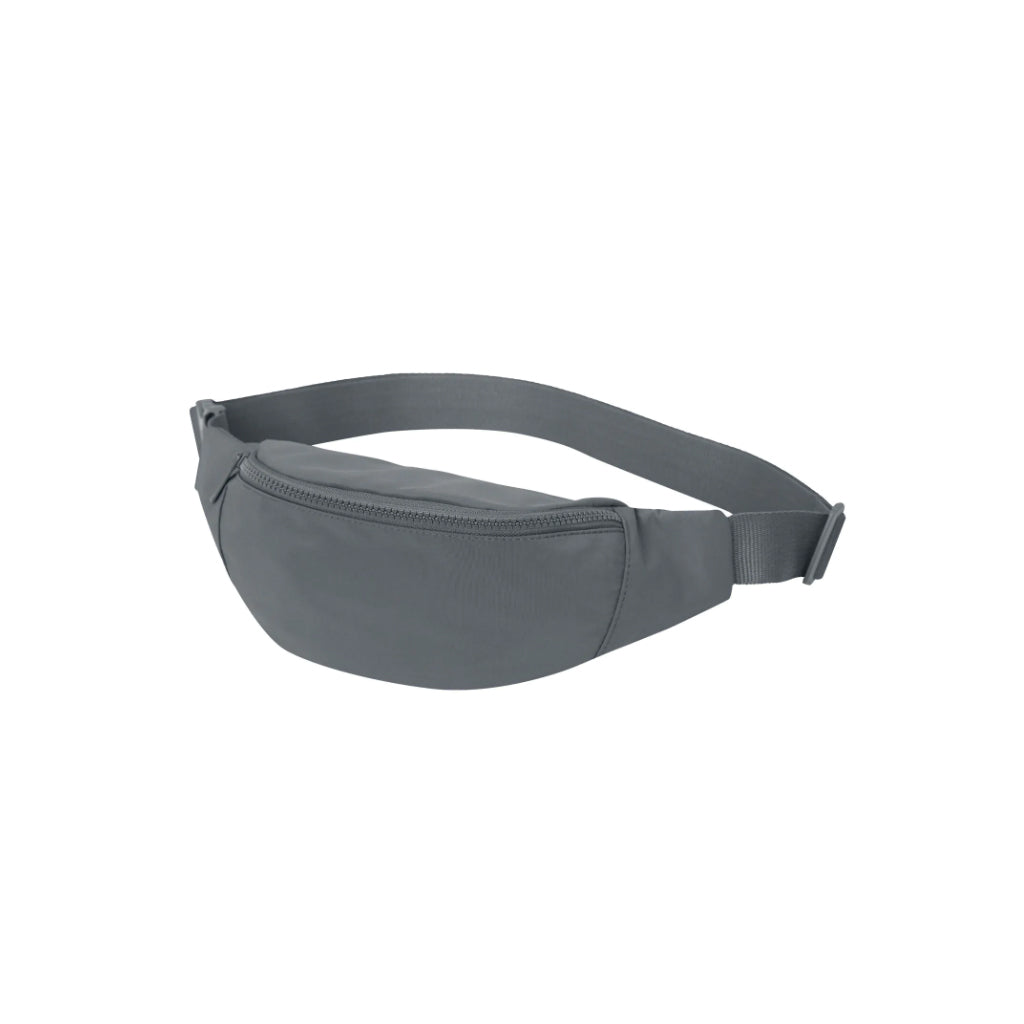 This KOI® MATTE FANNY PACK. 0.8 L. is made from 100% soft, smooth matte polyester and features a contrast lining for better visibility. It includes a main zippered compartment, a dyed-to-match easy-glide molded zipper with a metal pull, and a back zippered security pocket. The adjustable waist strap with a buckle allows for a custom fit, making it versatile for crossbody wear.
