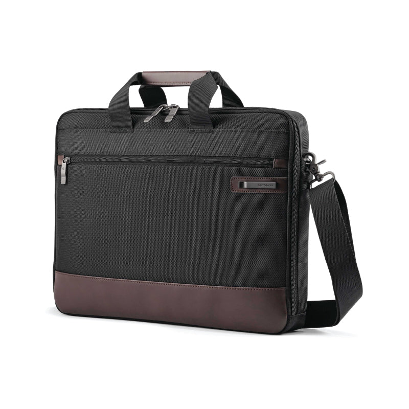 Samsonite, a business collection engineered to fit a busy lifestyle. This line of bags are lightweight and durable, designed to carry all of your belongings while still remaining comfortable and stylish. 17" × 12" × 2"