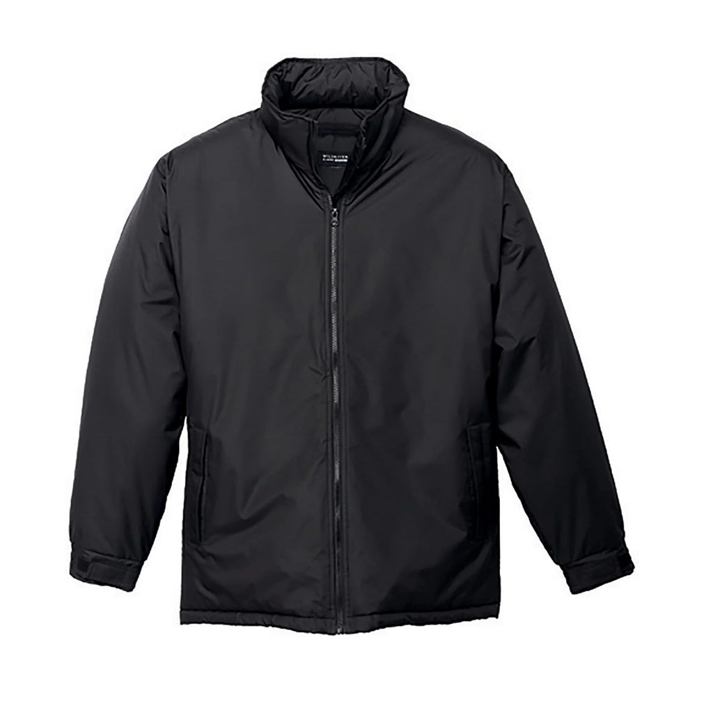 The Commuter - Adult Insulated Jacket is made from 100% polyester pongee, with a wind and water-resistant finish. It features insulation in the body and in the sleeves, also 100% polyester. Additional features include an inside fly, roll-up hood, inside suit pocket, front slash security pockets, and adjustable tab closures on the cuffs for added warmth.