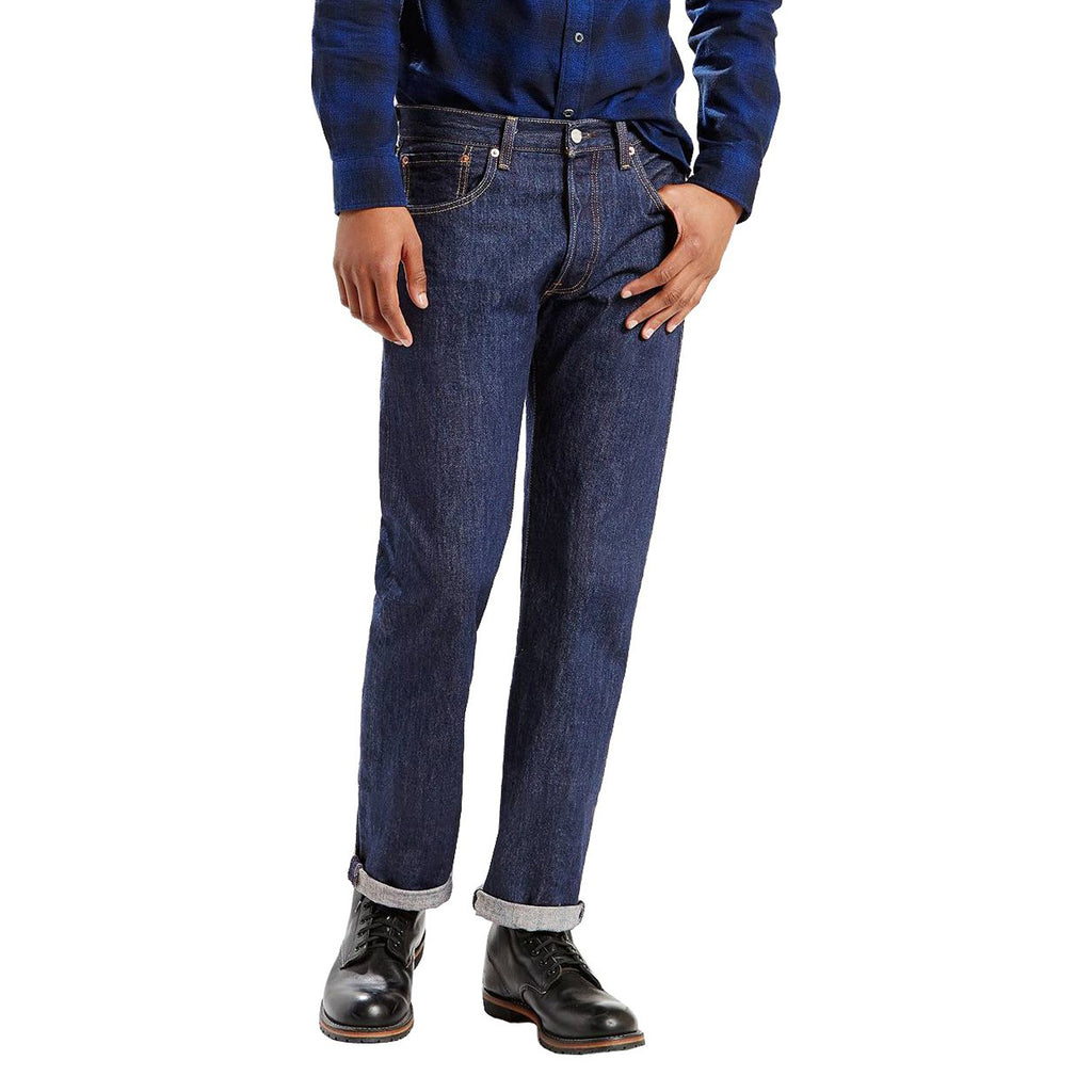 Levi's original fit, the 501, was designed with a straight fit, a signature button fly and a 5-pocket styling. It's the perfect look for any hardworking handyman who is looking for a comfortable and casual fit. With no added stretch, these jeans sit at the waist and have a regular fit through the thigh with a straight leg. For additional styling, you can roll up the hems or keep them full length. For an authentic look and feel, these jeans are a great choice.