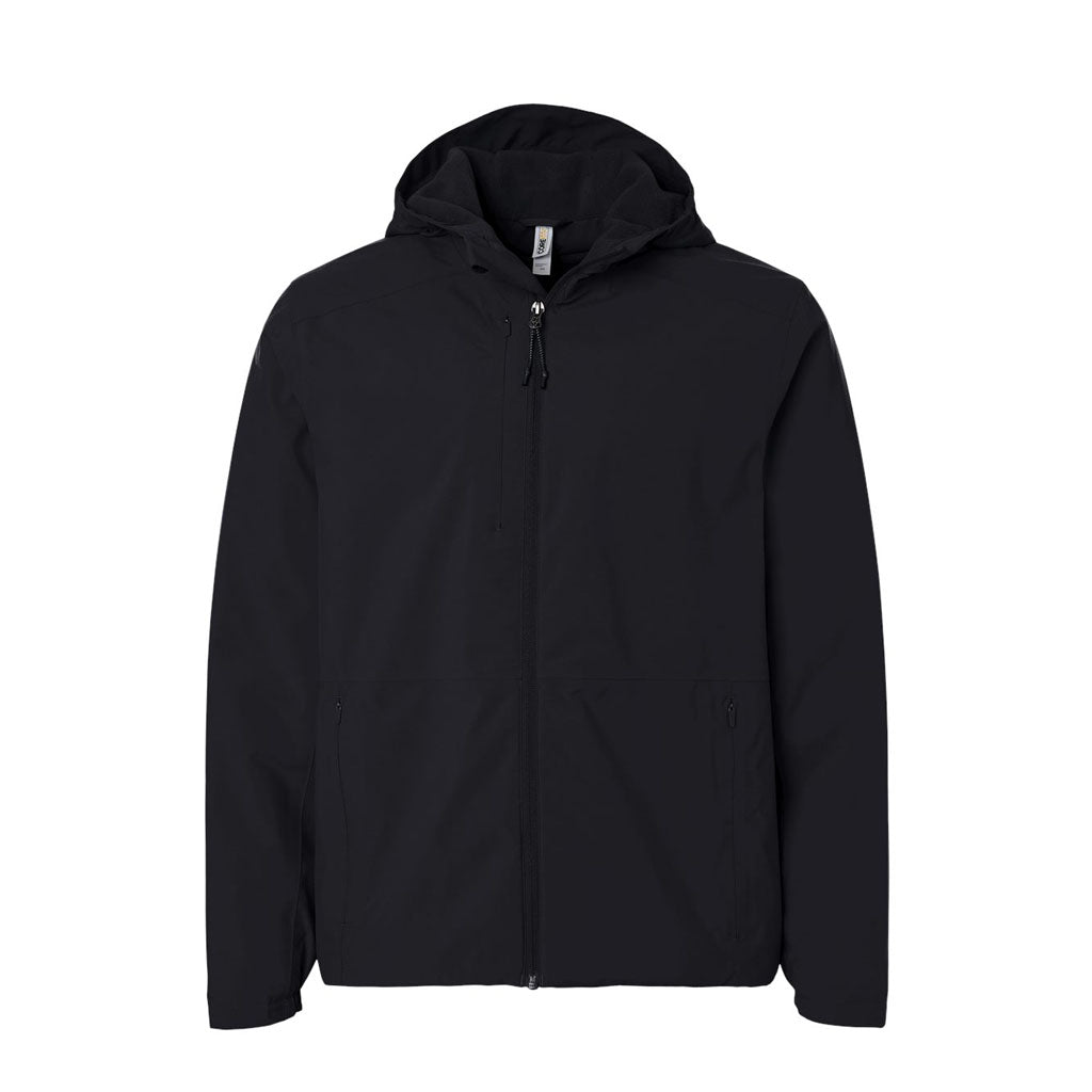 Designed for lightweight layering, this water-resistant jacket combines a smooth polyester shell with a cozy fleece-lined body and hood. Finished with practical details and a streamlined fit, it offers everyday protection without added bulk.