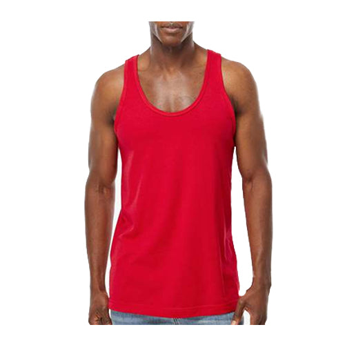 Stay cool in this ultra-lightweight Men's Tank Top. Crafted with soft fabric, ribbed crew taped neck, and double-needle stitching across the shoulders and bottom hem, this tank top is built to last! NAFTA compliant and featuring a tear away label, are you ready to kick your wardrobe into high gear?