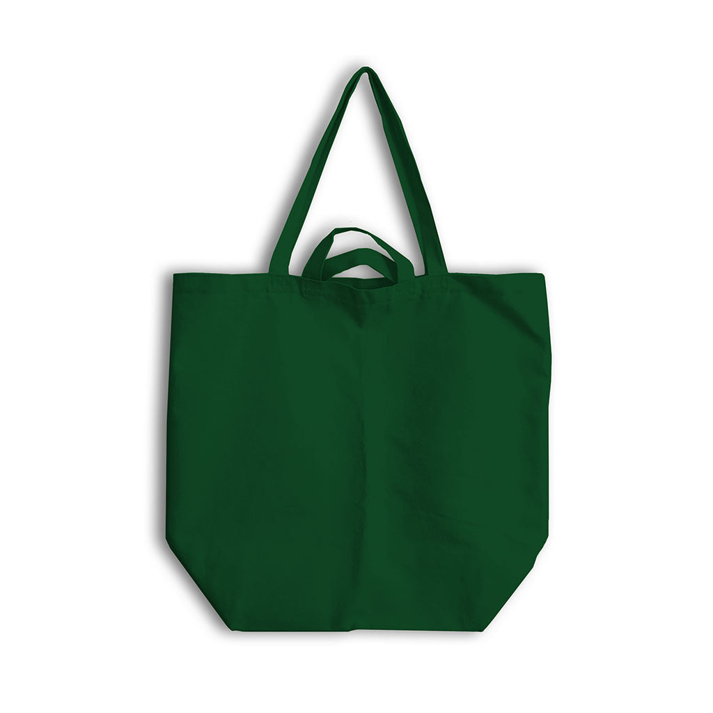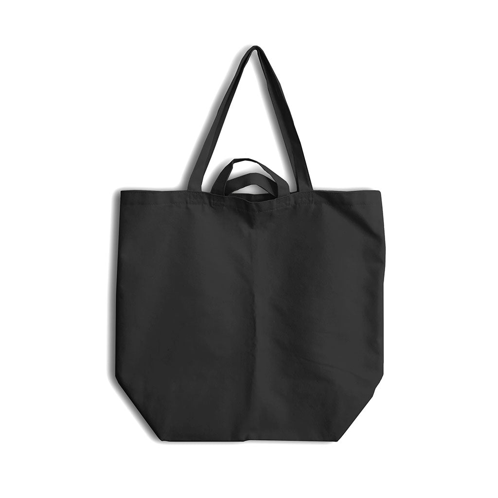 The Jumbo Tote is the perfect bag for carrying all your belongings. Crafted from sturdy yet soft cotton canvas, the bag features two reinforced handles and an interior zip pocket for items you want to keep secure. Its roomy shape is 18”W x 18”H x 7 ½”D, easily accommodating your laptop, books, and other large items.
