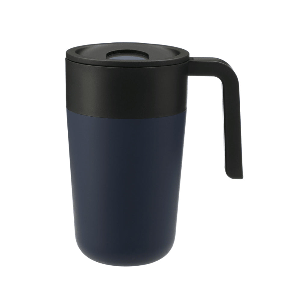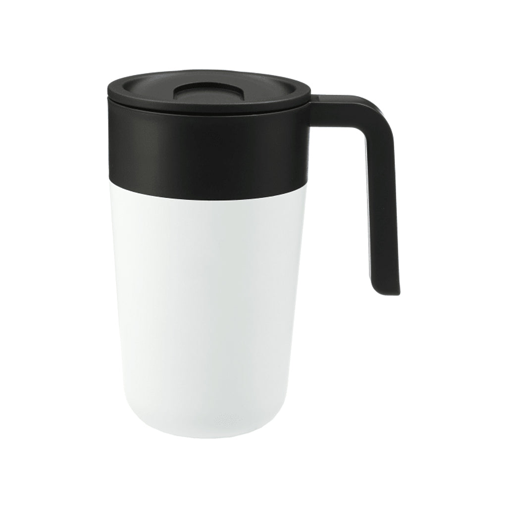 The Sigrid 16oz ECO Mug with Recycled Plastic combines a recycled PP liner, lid, and handle with a stainless steel outer wall. Its spill-resistant, press-on lid with slide closure ensures easy enjoyment of your favorite beverages while on the move.