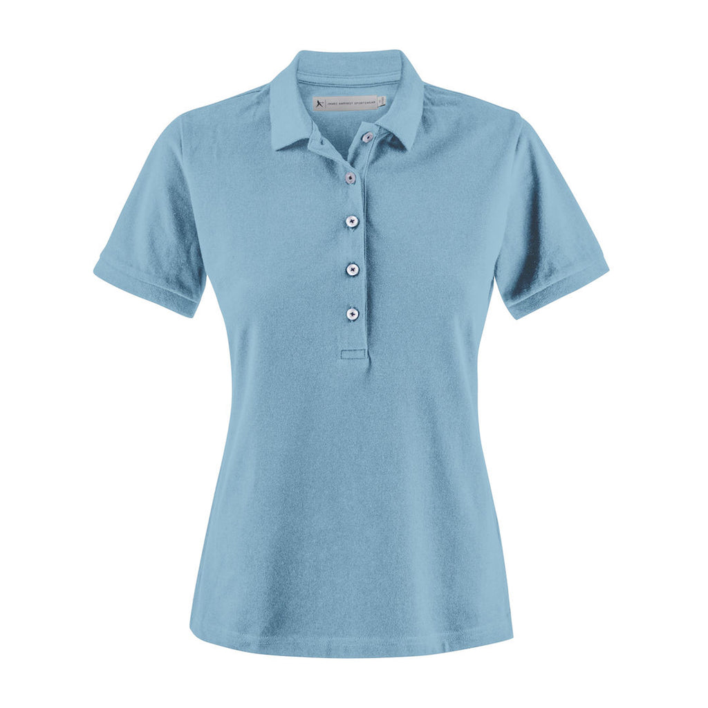 This Euro-Fit Women's Polo is imported and designed for a slim, flattering fit. It features side slits and contrast buttons for added detail, offering a stylish and comfortable look for any occasion.