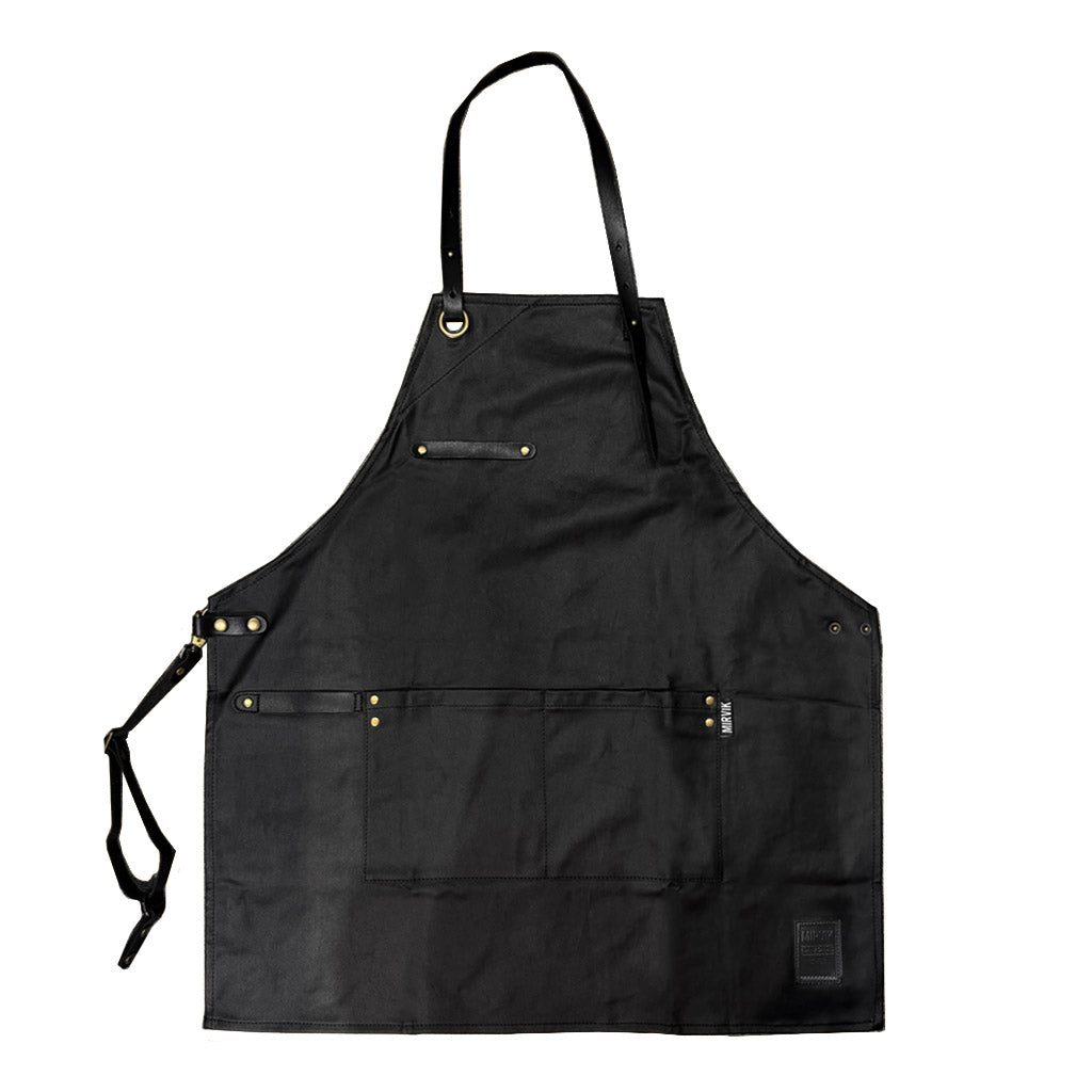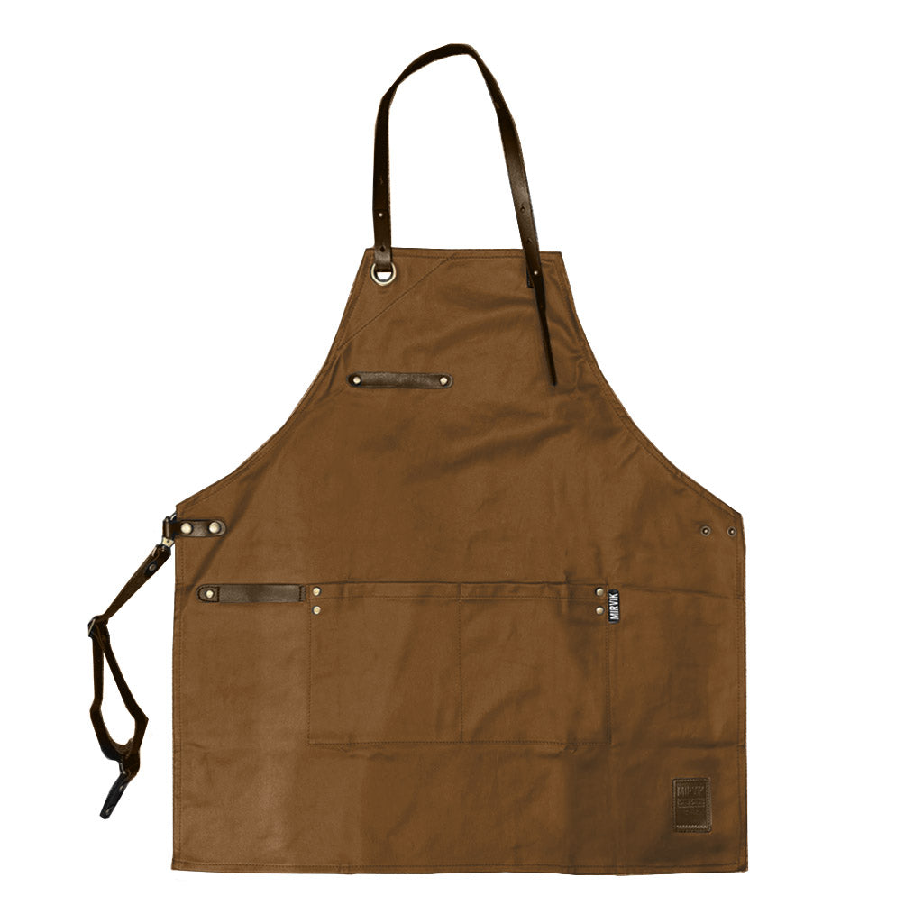 Featuring innovative stain and liquid repellent fabric, our new premium Handsome bib apron now comes in a women's fit-slightly narrower and shorter than its counterpart. A very modern simple design in high quality canvas fabrication. Accented with removable vegan leather straps at neckline and sides, complimentary colour and metal trims add a tasteful high end finish to this already uber quality apron. Front patch pockets are reinforced with durable double needle stitches as well as metal grommets for extra security.