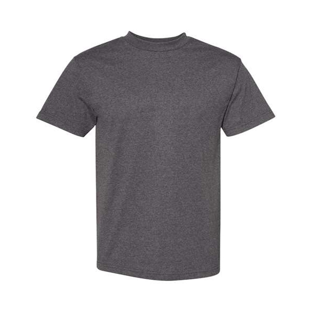 - Charcoal Heather & Safety Green: 50% Cotton / 50% Polyester
