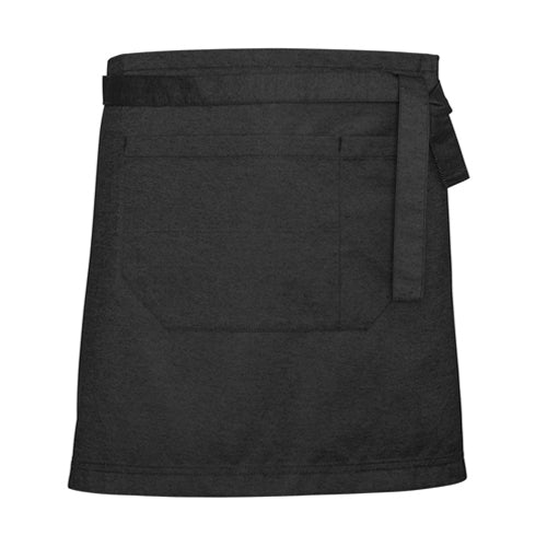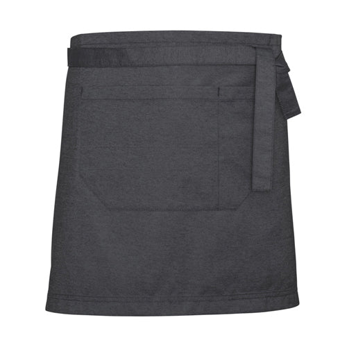 This Urban Waist Apron adds an edgy feel to your look. The unique denim look is reinforced with antique brass grommets, while the removable self-fabric straps maintain a comfortable fit. Achieve new heights of style in the kitchen with this modern apron.