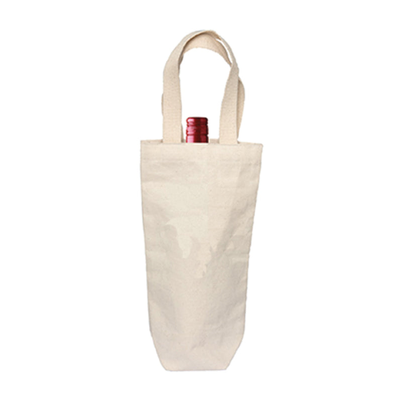 This 10oz Cotton Wine Tote Bag provides an attractive and durable way to tote up to one standard sized bottle of wine. Reusable and easy to clean, this tote is the perfect stylish way to transport your beverage.