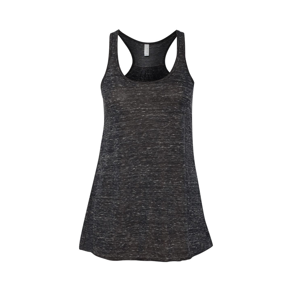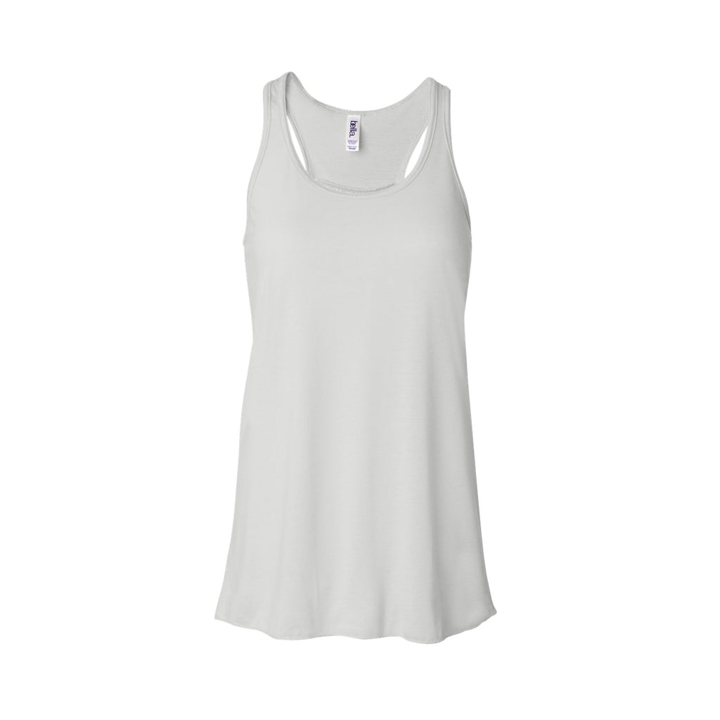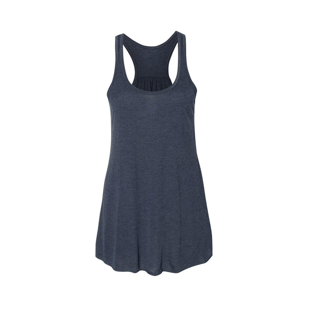 The Women's Flowy Racerback Tank has a relaxed, drapey fit with an A-line body. It features shirring at the racerback seam, a merrowed bottom hem, side seams, and a tear-away label.