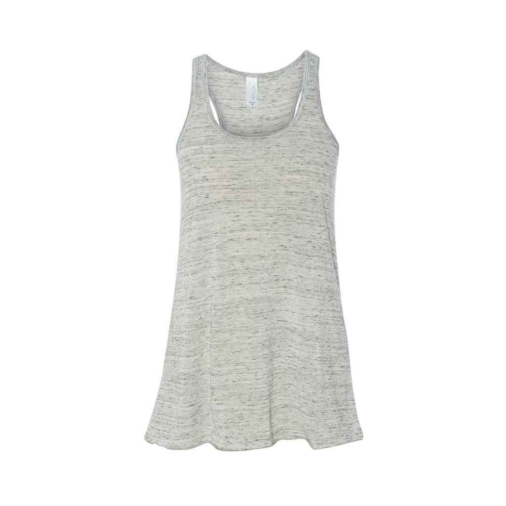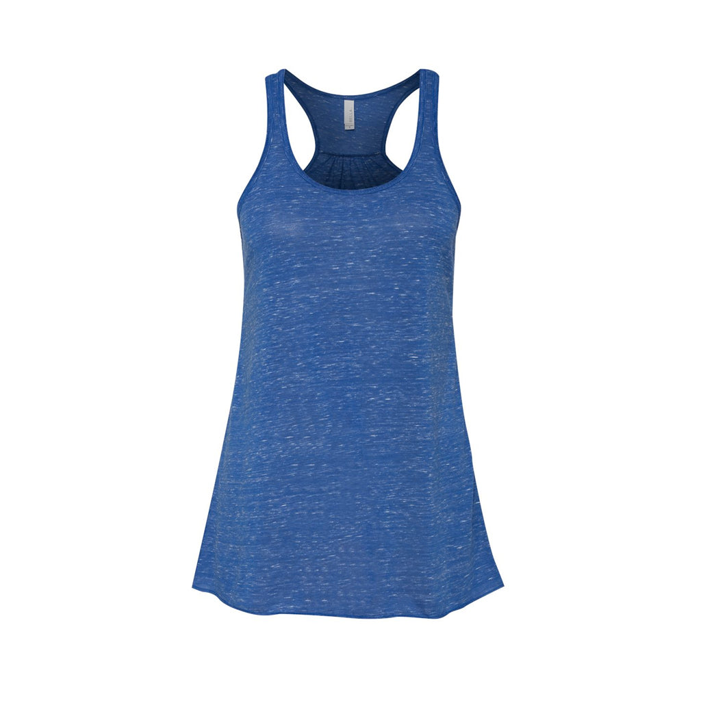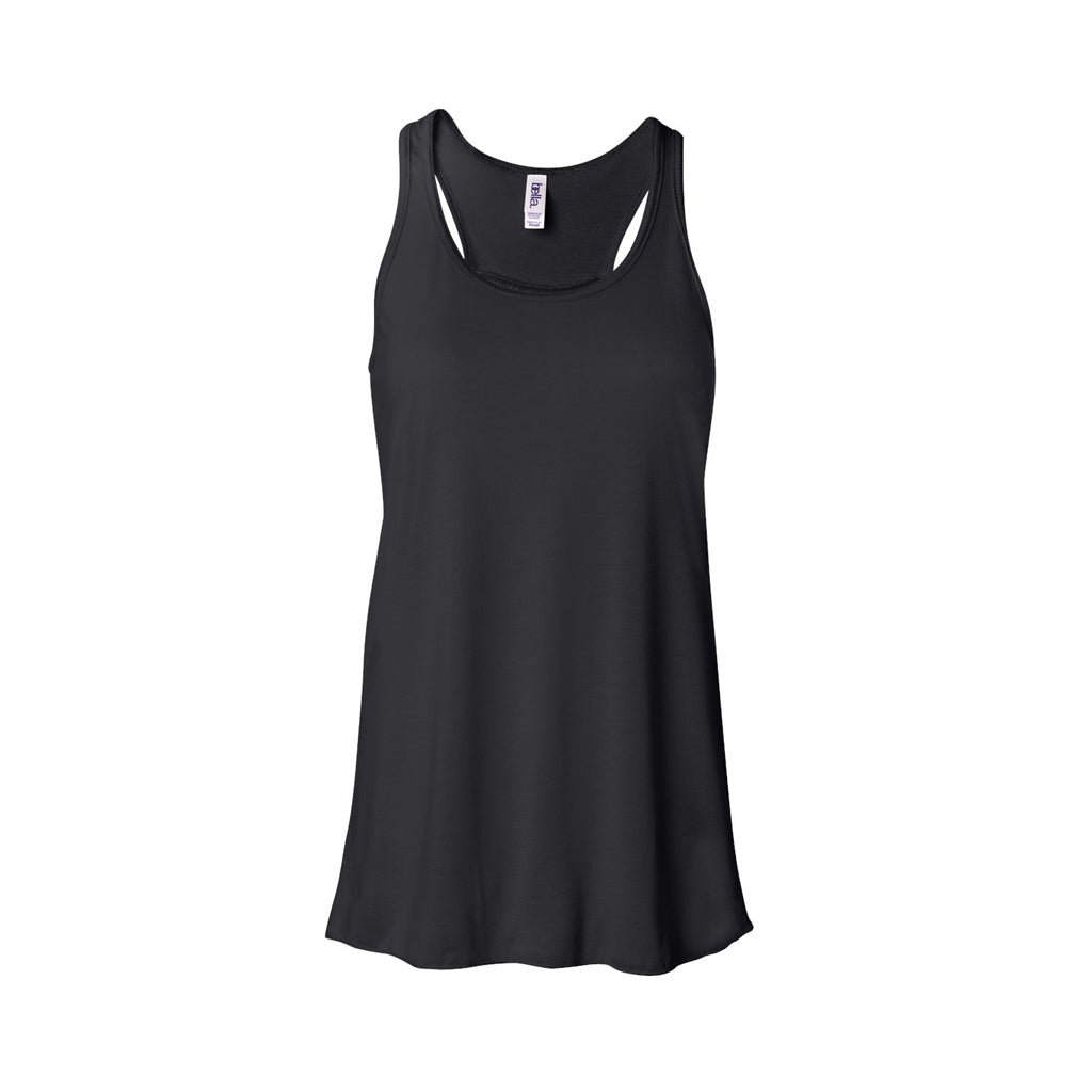 The Women's Flowy Racerback Tank has a relaxed, drapey fit with an A-line body. It features shirring at the racerback seam, a merrowed bottom hem, side seams, and a tear-away label.